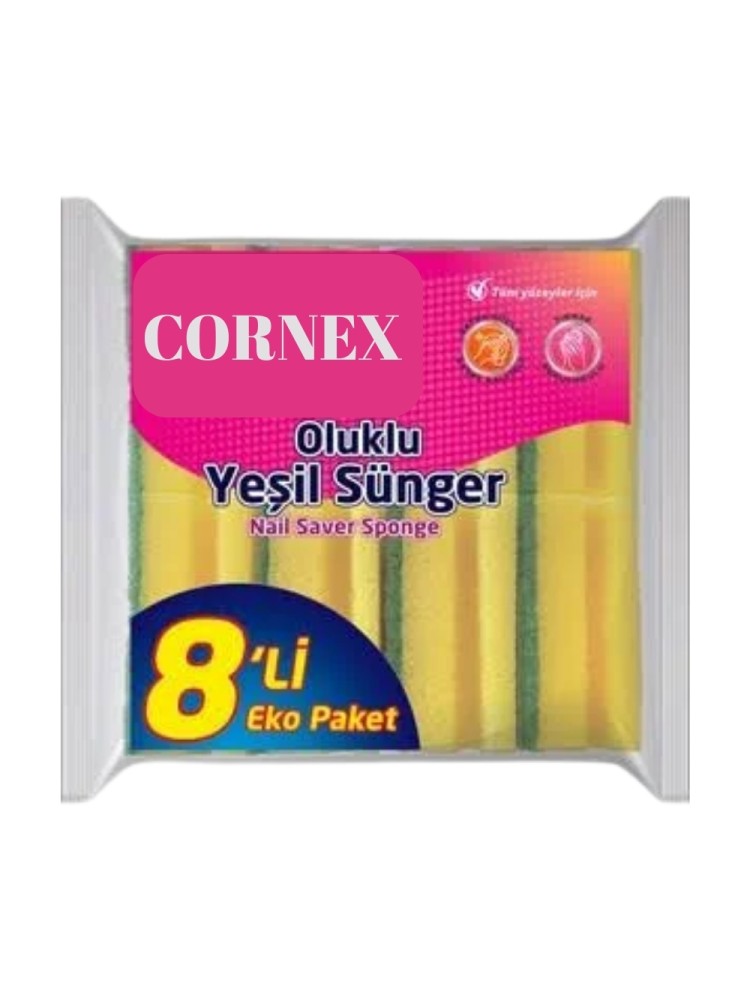 Cornex Bulaşık Süngeri Yeşil Oluklu 8'Li