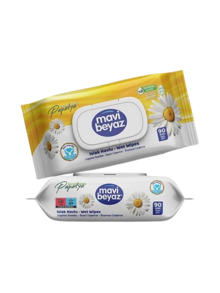 Mavi Beyaz Islak Havlu- Mendil 90'lı Papatya